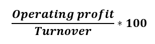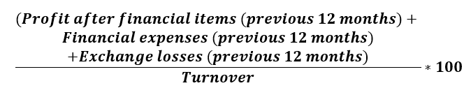 The operating profit margin is obtained by relating gross profit to turnover. Operating profit is calculated by deducting depreciation according to plan from Operating margin. The operating profit margin indicates how much the company’s operating result represents in relation to revenue before financial items are deducted.