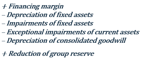 Financing margin and the financing margin % describe the company’s ability to cover loan repayments as well as the self-financed portion of working capital and investments using the profit generated from core operations and regular other business activities. The financing profit should be sufficient at least to cover repayments of existing loans. This indicator is of particular interest to lenders